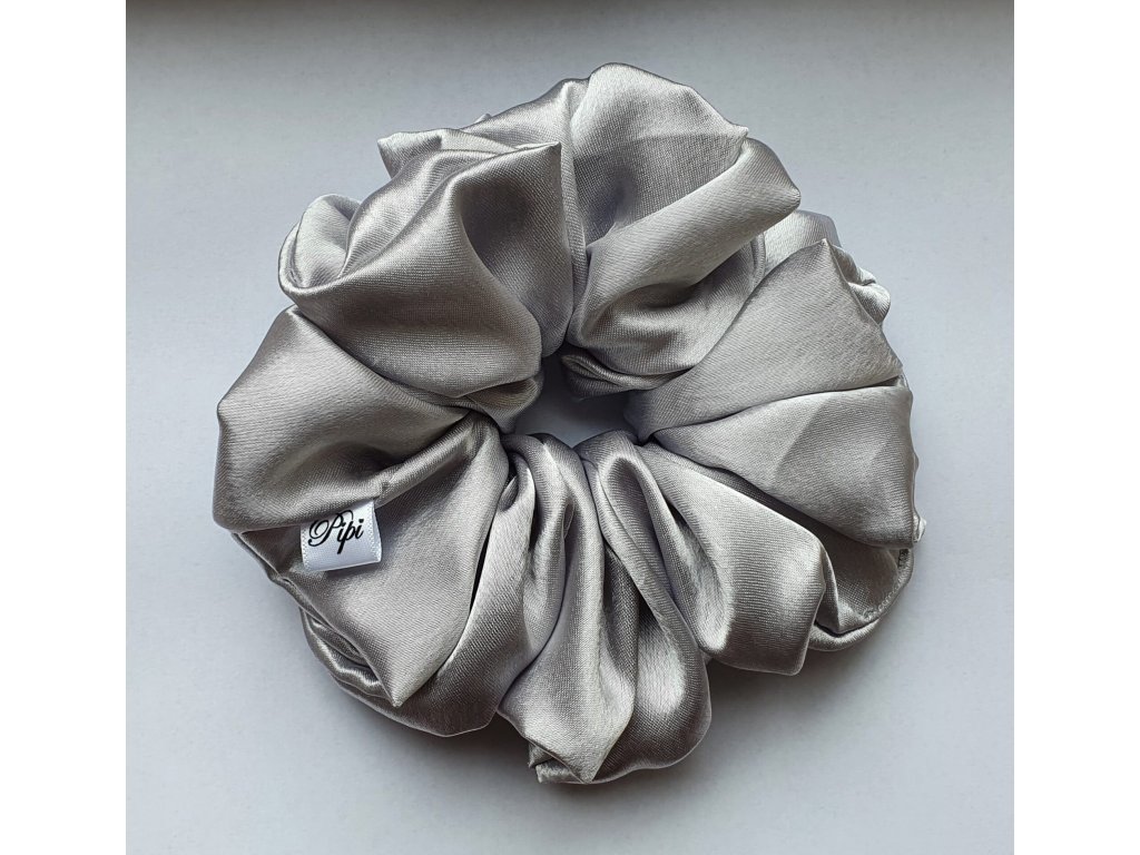 XXL gumička (scrunchie) ze saténu - Světle šedá