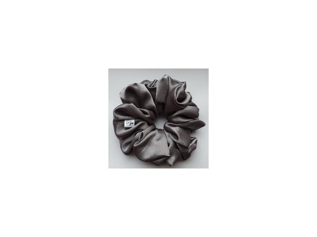 XXL gumička (scrunchie) ze saténu - Tmavě šedá