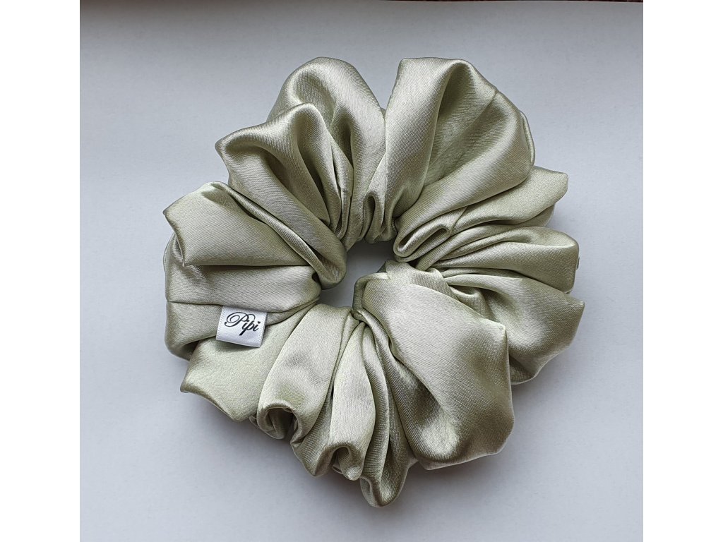 XXL gumička (scrunchie) ze saténu - Zelenkavá